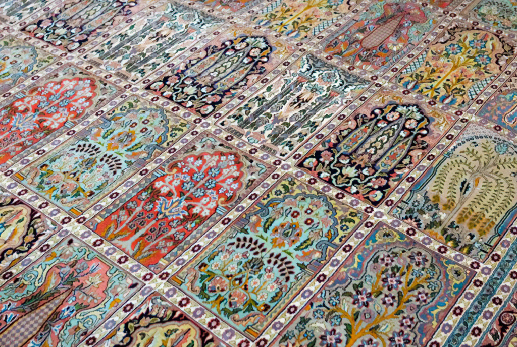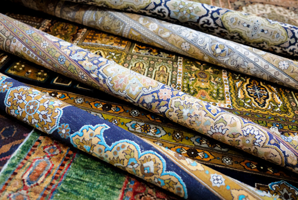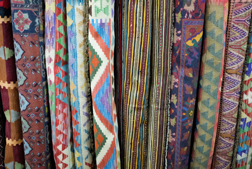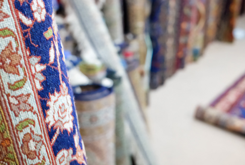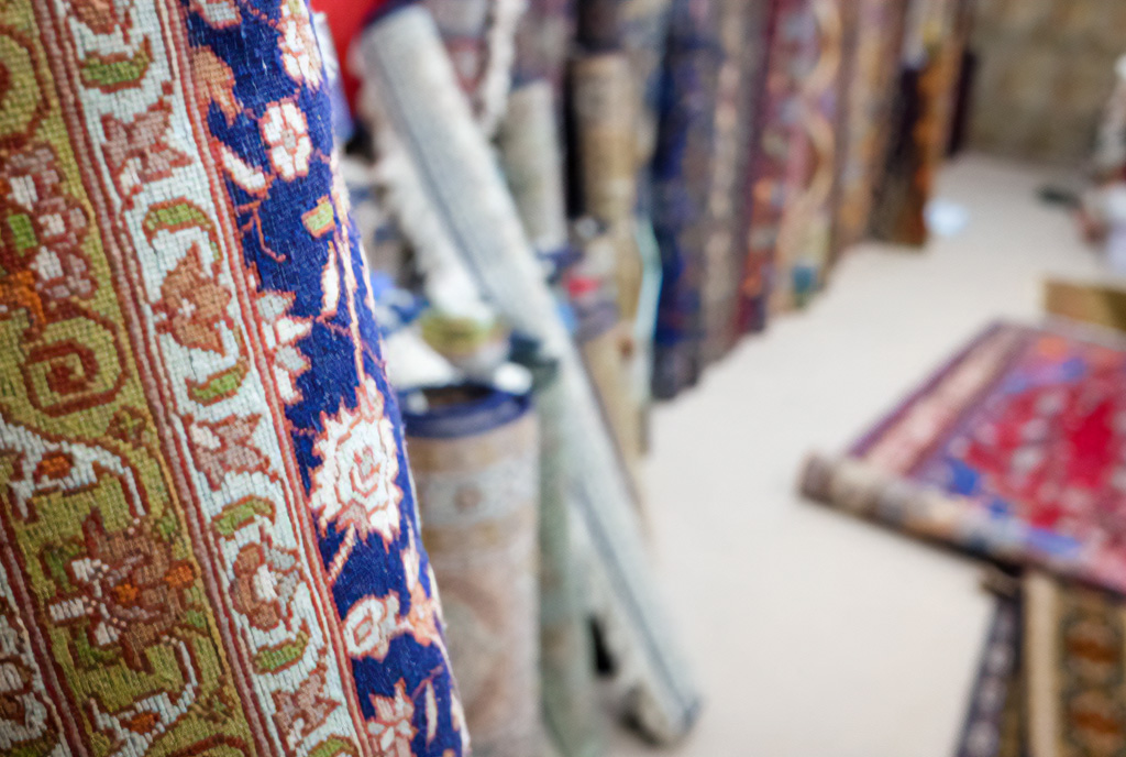 Плоди цих поїздок можна побачити, вишикувавшись уздовж стіни магазину Бхата. Рулон за рулоном прекрасних шовкових і вовняних підлогових покриттів, які є творами мистецтва так само, як і декоративним домашнім облаштуванням.